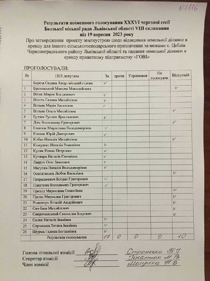 Голосування до рішення №1116