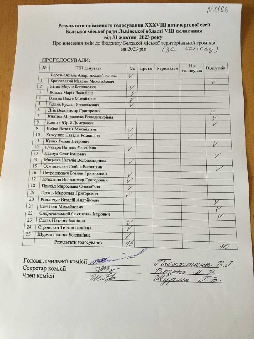 Голосування до рішення №1196