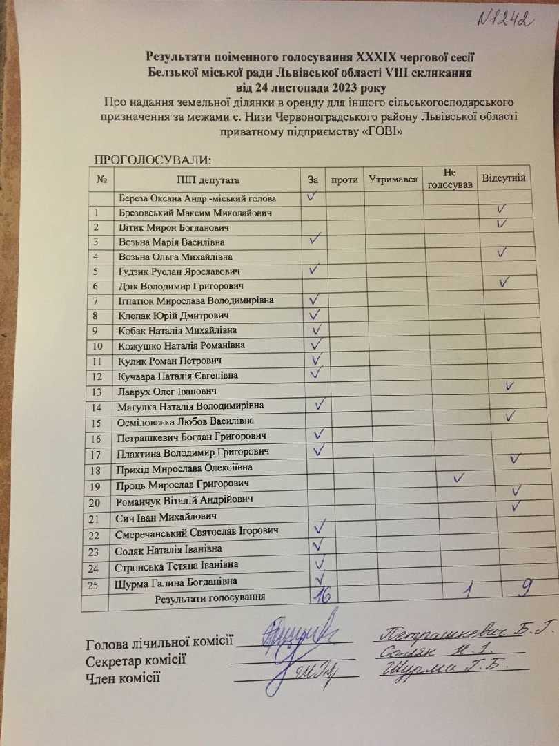 Голосування до рішення №1242