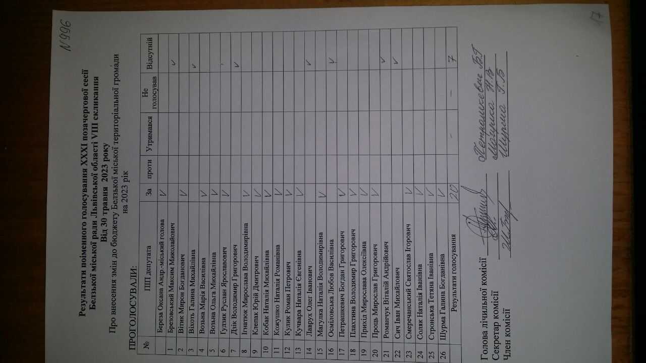 Голосування до рішення №996